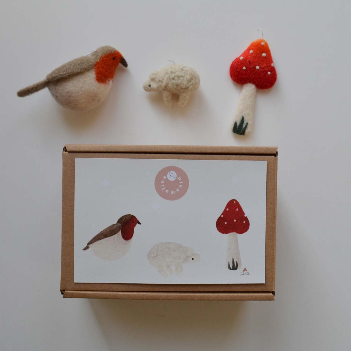 Realizzati a mano con la tecnica del feltro ad ago. Materiale: 100% lana cardata mulesing free.