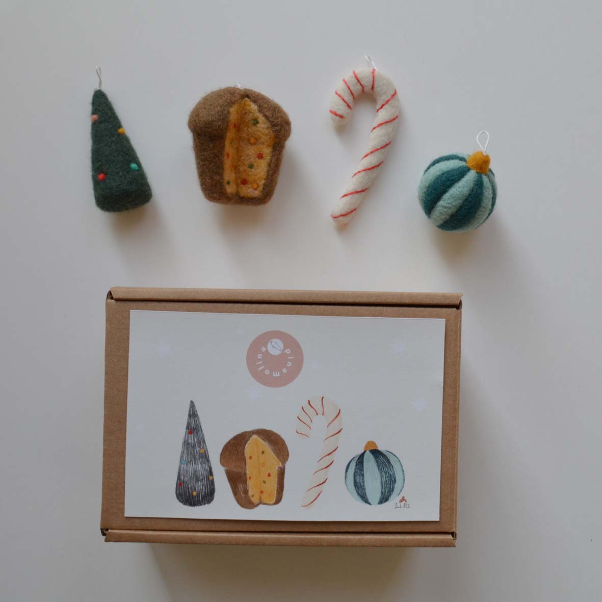 Box con quattro addobbini leggerissimi e perfetti da appendere all'albero di Natale.