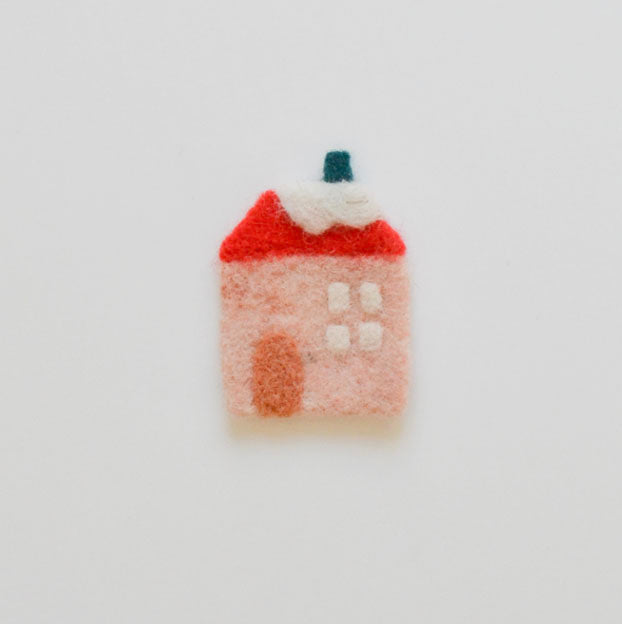Spilla casetta innevata realizzata a mano con la tecnica del feltro ad ago.